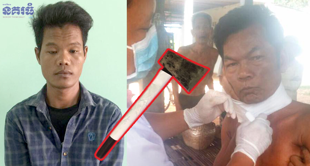 ខេត្តតាកែវ ៖ បុរស២នាក់ឪពុកនិងកូន បានទិញស្រាមកអង្គុយផឹកតទល់មុខគ្នា លុះក្រោយពីជាតិស្រាជ្រាបសព្វរាងកាយ ឪកូនទាំង២នាក់ក៏ចាប់ផ្តើមកើតមានទំនាស់ពាក្យសម្តីតឹងសរសៃកដាក់គ្នា រហូតធ្វើឱ្យភាគីកូនប្រុសក្រពុលមុខលែងដឹងខុសត្រូវ ក៏ស្ទុះទៅទាញពូថៅមកកាប់ប្រហារឪពុកបង្កើតរបស់ខ្លួន ដោយលែងខ្លាចបុណ្យបាប បណ្តាលឱ្យបុរសជាឪពុកទទួលរងរបួសជាទំងន់។