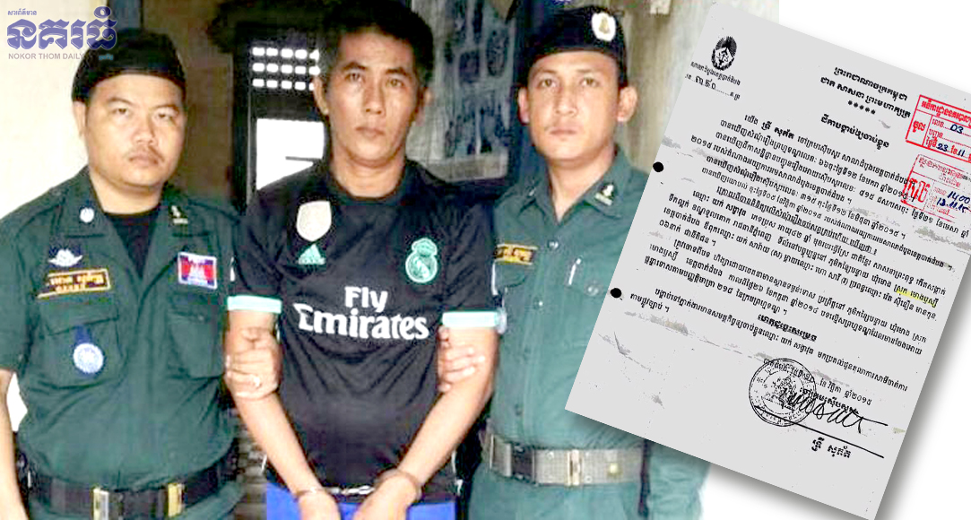 លោកកែវ សុខុម អធិការរងនគរបាលស្រុកមោងប្ញស្សី ទទួលបន្ទុកផ្នែកព្រហ្មទណ្ឌ បានឱ្យដឹងថា ការចាប់ខ្លួនជនសង្ស័យ គឺអនុវត្តតាមដីកាបង្គាប់ឱ្យចាប់ខ្លួន លេខ៣៩០ត.ព្រ ចុះថ្ងៃទី១០ ខែវិច្ឆិកា ឆ្នាំ២០១៥ របស់លោកទ្រី សុភ័ក ចៅក្រមស៊ើបសួរសាលាដំបូងខេត្ត ពីបទហិង្សាដោយចេតនាមានស្ថានទម្ងន់ទោស ប្រព្រឹត្តនៅចំណុចភូមិភូមិកន្សៃបន្ទាយ ឃុំមោង ស្រុកមោងឫស្សី ខេត្តបាត់ដំបង កាលពីថ្ងៃទី២៦ ខែកក្កដា ឆ្នាំ២០១៤ កន្លងទៅ។