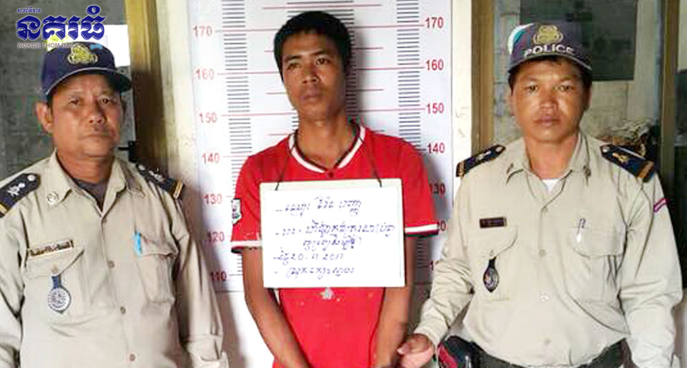 ខេត្តកណ្តាល ៖ បុរសម្នាក់ ក្រោយពីផឹកស្រាស្រវឹងជោក ក៏ស្រាប់តែមករករឿងឈ្លោះប្រកែកជាមួយនឹងឪពុកម្តាយបង្កើតរបស់ខ្លួន រួចគំរាមចាក់សម្លាប់ឪពុកម្តាយចោល និងថែមទាំងបានទាញអង្រែបុកគ្រឿង វាយបំផ្លាញទ្រព្យសម្បត្តិ និងសម្ភារប្រើប្រាស់ក្នុងផ្ទះខូចខាតខ្ទេចអស់ ទើបធ្វើឱ្យក្រុមគ្រួសារទ្រាំលែងបាន ក៏ប្តឹងសមត្ថកិច្ចឱ្យចាប់ឃាត់ខ្លួន កាលពីវេលា ម៉ោង១០និង៣០នាទីព្រឹក ថ្ងៃទី២០ ខែវិច្ឆិកា ឆ្នាំ២០១៧ នៅចំណុចភូមិព្រែកត្រែង២ ឃុំសំរោងធំ ស្រុកកៀនស្វាយ។