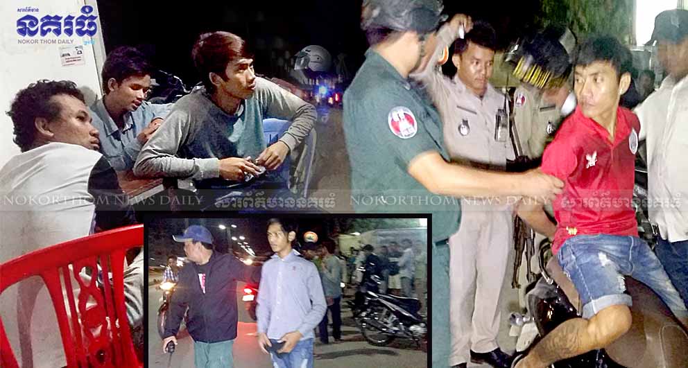 ភ្នំពេញ ៖ យុវជនក្មេងទំនើងមួយក្រុមឃើញយុវជន៤នាក់ រាំឌឺនៅក្រៅវង់ ចាំស្ទាក់វាយ ត្រូវបានកម្លាំងសមត្ថកិច្ច ឃាត់បាន២នាក់ កាលពីវេលាម៉ោង១០និង៣០នាទីយប់ថ្ងៃទី ៣ខែធ្នូ ឆ្នាំ២០១៧ នៅកន្លែងតាំងពិពរ័ណ៍ ខ្មែរ-ថៃ ក្នុងដីឡូត៍មួយកន្លែង តាមបណ្តោយផ្លូវវេងស្រេង ភូមិចោមចៅ សង្កាត់ចោមចៅ២ ខណ្ឌពោធិ៍សែនជ័យ ។