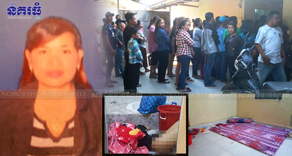 ភ្នំពេញ ៖ ស្ត្រីជាមេម៉ាយកូន២ បានទាក់ទងស្នេហាជាមួយបុរសម្នាក់ និងបានជួលបន្ទប់ស្នាក់នៅរួមគ្នាអស់មួយរយៈមកហើយ និងឧស្សាហ៍កើតមានទំនាស់ពាក្យសម្តីនឹងគ្នាខ្លាំងណាស់ លុះក្រោយមកស្រាប់តែមានអ្នកជិតខាងបានប្រទះឃើញស្ត្រីរងគ្រោះដេកស្លាប់នៅក្នុងបន្ទប់ទឹកមានពាក់តែអាវ អត់មានស្លៀកខោ ចំណែកសម្ភារគ្រឿងអលង្ការ រប៉ាត់រប៉ាយពេញបន្ទប់ ដោយឡែកបុរសជាប្រុសស្នេហ៍ក៏បាត់ខ្លួនទៀត ទើបធ្វើឱ្យមានការសង្ស័យថា ករណីនេះ គឺជារឿងឃាតកម្ម ប្រុសស្នេហ៍ច្របាច់កសម្លាប់ស្រីស្នេហ៍ក្នុងបន្ទប់ទឹក។