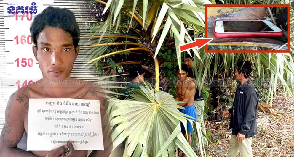 សមត្ថកិច្ចមូលដ្ឋាន បានបញ្ជាក់ថា ក្រោយទទួលបានពាក្យបណ្តឹងពីនារីរងគ្រោះ សមត្ថកិច្ចបានចុះធ្វើការស្រាវជ្រាវភ្លាមៗ និងបានដឹងថា ជនសង្ស័យបានប្រើប្រាស់សំបកកំប៉ុងគោជល់ បត់ធ្វើជាវត្ថុរឹងស្រួច រួចយកទៅភ្ជង់កនារីរងគ្រោះ ហើយសម្លុតយកទូរស័ព្ទ១គ្រឿង iPhone 5S ពណ៌មាស ហើយគេចខ្លួនមករោងស្នាក់នៅចម្ងាយពីកន្លែងកើតហេតុប្រហែល១គីឡូម៉ែត្រ ហើយភ្លាមនោះ សមត្ថកិច្ចបានចុះ ឃាត់ខ្លួនជនសង្ស័យទាំងយប់ ដើម្បីនាំមកសួរនាំ។ លុះនៅព្រឹកថ្ងៃទី២៥ ខែមករា ឆ្នាំ២០១៨ សមត្ថកិច្ចក៏នាំជនសង្ស័យទៅចង្អុលបង្ហាញទូរស័ព្ទដែលជនសង្ស័យប្លន់បានពីនារីរងគ្រោះ រួចយកទៅលាក់ទុកនៅលើចុងត្នោត។