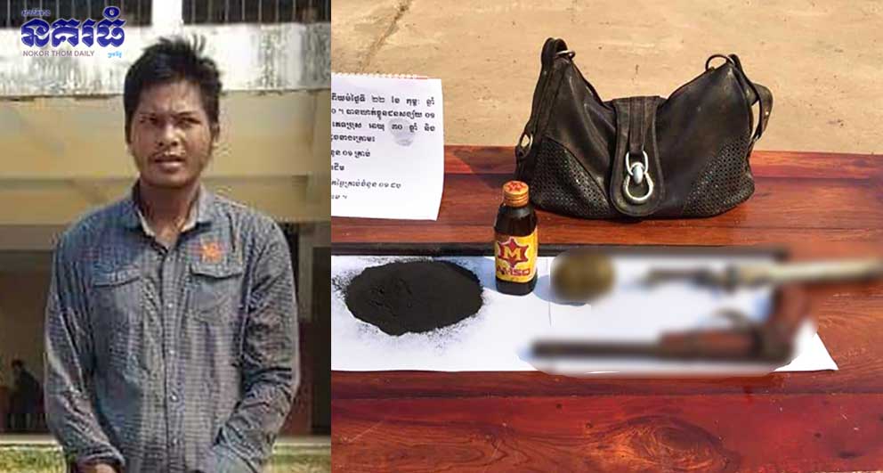 ខេត្តឧត្តរមានជ័យ ៖ ជនសង្ស័យម្នាក់ ដែលបានធ្វើសកម្មភាពគប់គ្រាប់បែកច្នៃ ចូលក្នុងតូបលក់ចាប់ហួយមួយកន្លែង បណ្តាលឱ្យស្ត្រីជាម្ចាស់តូបចាប់ហួយ រងរបួស កាលពីយប់ថ្ងៃទី២២ ខែកុម្ភៈ ឆ្នាំ២០១៨ នៅចំណុចភូមិទួលពង្រ ឃុំទំនប់ដាច់ ស្រុកត្រពាំងប្រាសាទ ត្រូវបានសមត្ថកិច្ចស្រាវជ្រាវ ចាប់ឃាត់ខ្លួនបាន កាលពីថ្ងៃទី០១ ខែមីនា ឆ្នាំ២០១៨ នៅចំណុចភូមិបន្ទាយចាស់ ឃុំព្រះប្រឡាយ ស្រុកត្រពាំងប្រាសាទ។