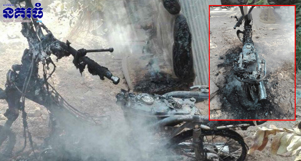 ខេត្តបាត់ដំបង ៖ បុរសប្រមឹកម្នាក់ ក្រោយពីផឹកស្រាស្រវឹងធ្លាក់ភ្នែក ក៏មិនទារយកសោម៉ូតូពីកូនប្រុស បំណងជិះចេញទៅក្រៅ តែកូនប្រុសមិនព្រមឱ្យ ព្រោះឃើញឪពុកស្រវឹងជោកជាំណាស់ទៅហើយ ខ្លាចកើតមានគ្រោះថ្នាក់ជាយថាហេតុ ស្រាប់តែឪពុកចិត្តកំណាចផ្ទុះកំហឹង ក៏ដុតម៉ូតូចោល បណ្តាលឱ្យឆេះម៉ត់ សល់តែគ្រោងឆ្អឹងដែក។