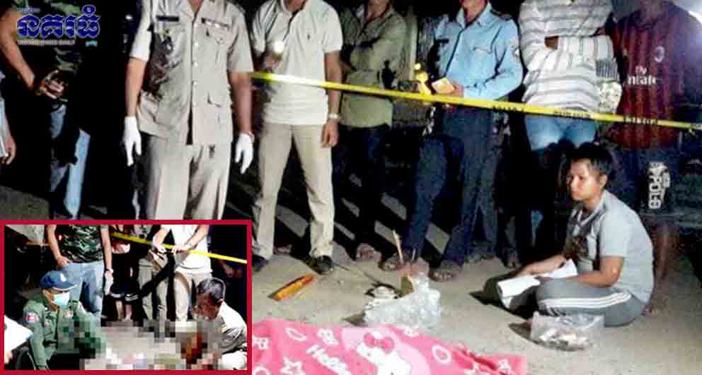 ខេត្តកណ្តាល ៖ យុវជនម្នាក់ បានជិះម៉ូតូតែម្នាក់ឯង ទៅដើរលេងបុណ្យបញ្ចុះសីមា នៅក្នុងវត្តមួយ លុះដើរលេងអស់ចិត្ត ក៏ជិះម៉ូតូបំណងត្រឡប់មកផ្ទះវិញ ស្រាប់តែធ្វើដំណើរបានពាក់កណ្តាលផ្លូវ ដល់ចំណុចកន្លែងស្ងាត់ ក៏ត្រូវជនជាឃាតករដៃឆៅម្នាក់ បានធ្វើសកម្មភាពកាប់ប្រហារទៅលើជនរងគ្រោះចំកញ្ចឹងកពីក្រោយ បណ្តាលឱ្យដួលម៉ូតូក្បែរចិញ្ចើមផ្លូវ ដេកស្លាប់ក្នុងថ្លុកឈាមគួរឱ្យរន្ធត់។