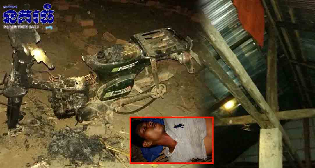 បុរសចិត្តខ្លាំងគំនិតខ្លី ដែលផឹកស៊ីស្រវឹងគ្រាត់តែមិនឃើញប្រពន្ធនៅផ្ទះ បែរជាចាក់សាំងដុតម៉ូតូឆេះម៉ត់ រួចរត់ទៅចងកសម្លាប់ខ្លួននេះ មានឈ្មោះឈូក រតនា អាយុ២៨ឆ្នាំ មុខរបរធ្វើស្រែ មានប្រពន្ធឈ្មោះអី សុផាត មុខរបកម្មការិនីេរោងចក្រ ស្នាក់នៅភូមិឃុំកើតហេតុខាងលើ។
