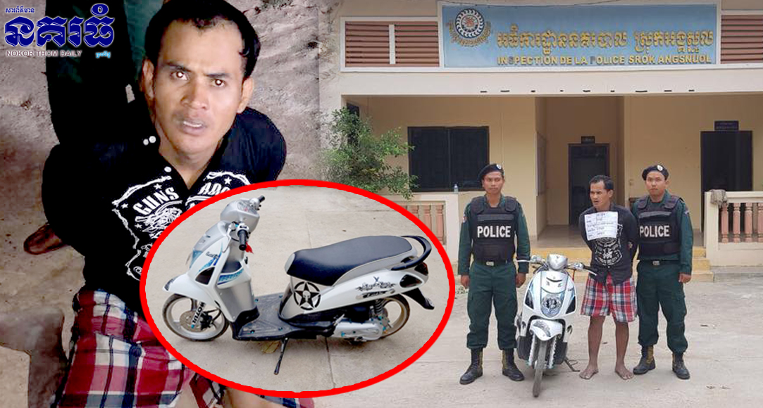 ជនសង្ស័យដែលត្រូវចាប់ខ្លួននោះ ឈ្មោះ ម៉ៅ មឿន អាយុ២៩ឆ្នាំ ជនជាតិខ្មែរ មុខរបរកម្មករសំណង់ រស់នៅក្នុងភូមិត្រពាំងសុព័រ ឃុំឆក់ឈើនាង ស្រុកអង្គស្នួល ខេត្តកណ្តាល ។ នគរបាលដកហូតបានកូនសោម៉ូតូ ឧបករណ៍សម្រាប់ឆ្កឹះសោកម៉ូតូ ចំនួន០២ ទួណឺវីសចំនួន១ សោខ្សៀរចំនួន១ មួកសុវត្ថិភាពចំនួន០២ និងមួកក្រណាត់ពណ៌ខ្មៅចំនួន១។