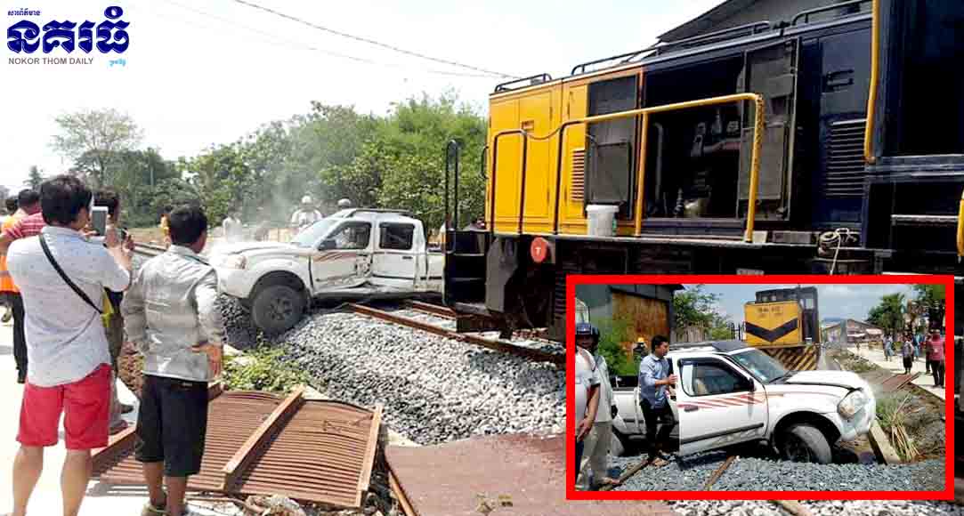 ខេត្តបន្ទាយមានជ័យ ៖ បុរសម្នាក់បានបើករថយន្តឆ្លងកាត់ផ្លូវដែកដោយខ្វះការប្រុងប្រយ័ត្ន ស្របពេលដែលមានរថភ្លើងបើកឆ្លងកាត់ ក៏ជ្រុលទៅបុកអូសរថយន្តចម្ងាយប្រមាណ៣០ម៉ែត្រ បណ្តាលឱ្យអ្នកបើកបរថយន្តទទួលរងរបួសធ្ងន់ កាលពីវេលាម៉ោងជិត១១ព្រឹក ថ្ងៃទី២១ ខែមេសា ឆ្នាំ២០១៨ នៅចំណុចផ្លូវរថភ្លើងមួយកន្លែង ស្ថិតក្នុងភូមិអូរជ្រៅ សង្កាត់ប៉ោយប៉ែត ក្រុងប៉ោយប៉ែត ។
