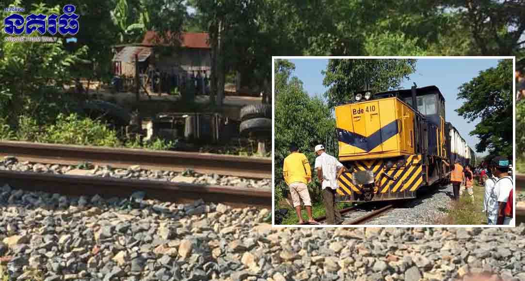 រថយន្តដឹកដីបើកកាត់ផ្លូវដែក រថភ្លើង បុកក្រឡាប់បះជើង