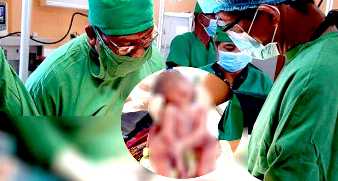 ប្រភពដដែលបន្តថា ម្តាយទារកខាងលើ ត្រូវបានក្រុមគ្រួសារដឹកបញ្ជូនមកកាន់មន្ទីរពេទ្យ នៅវេលាម៉ោង៩ព្រឹក លុះមកដល់ ក៏ត្រូវគ្រូពេទ្យជំនាញពិនិត្យឃើញថា ស្ត្រីរូបនេះមិនអាចសម្រាលដោយធម្មជាតិបាននោះទេ ចាំបាច់ត្រូវធ្វើការវះកាត់។ បន្ទាប់មក នៅរសៀលថ្ងៃដដែល គ្រូពេទ្យក៏ជួយធ្វើការវះកាត់សម្រាលកូនឱ្យស្ត្រីខាងលើ ប៉ុន្តែជាលទ្ធផល នៅពេលដែលវះកាត់ចេញមក ទារកក្នុងផ្ទៃ បែរជាមានរូបរាងចម្លែកខុសពីទារកដទៃ ត្រង់ថា ទារកនេះមានក្បាលតែ១ ប៉ុន្តែមានដងខ្លួន២ ដៃ៤ និងជើងដល់ទៅ៤ឯណោះ និងមិនអាចមើលដឹងច្បាស់ថា ជាភេទស្រី ឬក៏ប្រុសនោះទេ។