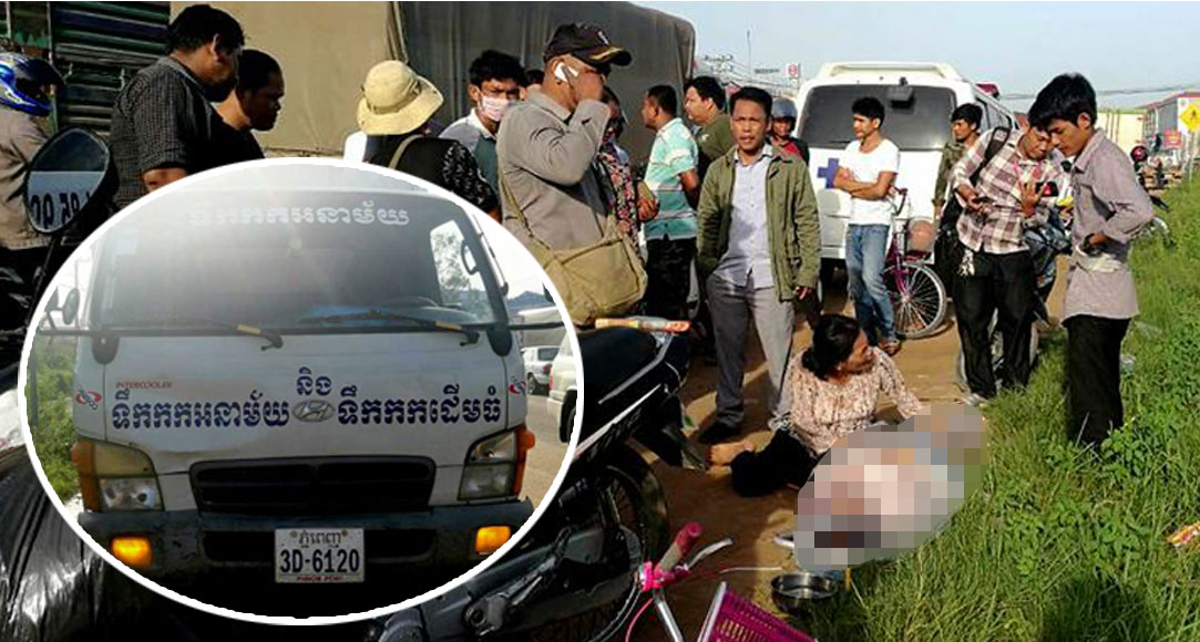 ភ្នំពេញ ៖ បុរសម្នាក់ បានបើកម៉ូតូដឹកប្រពន្ធ និងកូនប្រុសចេញពីផ្ទះជួល សំដៅជូនប្រពន្ធទៅធ្វើការ ស្រាប់តែអកុសល បើកដល់ពាក់កណ្តាលផ្លូវ ក៏ត្រូវរថយន្តដឹកទឹកកកមួយគ្រឿង បើកយ៉ាងលឿន ព្យាយាមវ៉ាជែងរថយន្តមួយគ្រឿងផ្សេងទៀត ពីខាងស្តាំដៃ ធ្វើឱ្យជ្រុលទៅបុកម៉ូតូជនរងគ្រោះយ៉ាងពេញទំហឹង បណ្តាលឱ្យស្ត្រីជាប្រពន្ធធ្លាក់ពីលើម៉ូតូស្លាប់យ៉ាងអាណោចអាធ័ម ចំណែកបុរសជាប្តី រួមនិងកូនតូច ទទួលរងរបួសធ្ងន់។