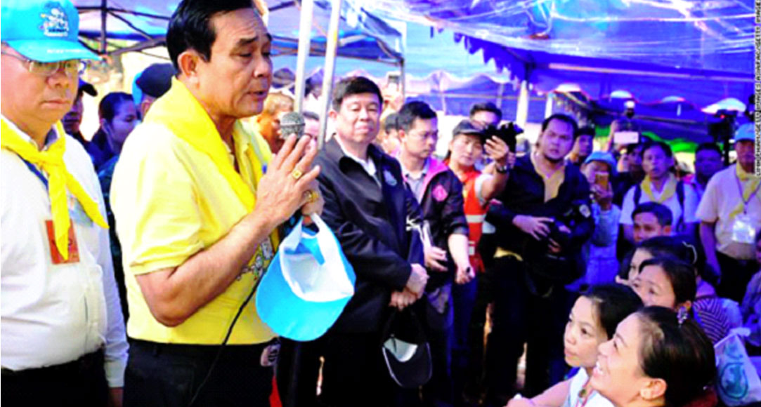 នៅថ្ងៃសុក្រ ទី២៨ ខែមិថុនា ឆ្នាំ២០១៨នេះ លោកប្រាយុទ្ធ ចាន់អូចារ នាយករដ្ឋមន្ត្រីថៃ បានអញ្ជើញទៅដល់ទីតាំងកើតហេតុរូងភ្នំ Tham Luang នៅខេត្តឈៀងរ៉ៃ ភាគខាងជើងប្រទេសថៃ  ដែលកីឡាករក្មេង១២នាក់ និងគ្រូបង្វឹកម្នាក់ កំពុងបាត់ខ្លួននៅក្នុងរូងភ្នំ អស់រយៈពេល៦ថ្ងៃកន្លងមកហើយ។