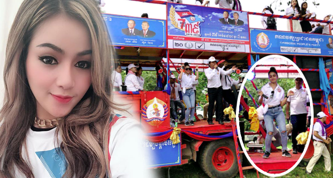 ក្នុងឈុតខោខូវប៊យ រហែកជង្គង់ ពាក់អាវយឺតសដៃខ្លី សញ្ញារូបទេវតាបាចផ្កា នាងរ៉ាប៊ី លេងស្ទីលចងអាវលើពោះបញ្ចោញរន្ធផ្ចិតយ៉ាងសិចស៊ី ហើយនាងច្រៀងបទ “ស្នេហ៍អើយស្នេហ៍”  ជាមួយនាយពាក់មី ឃោសនារកសំឡេងឆ្នោតឱ្យគណបក្សប្រជាជន ដែលធ្វើឱ្យមហាជនមួយចំនួនបានចាប់អារម្មណ៍ផងដែរថា ពេលនេះសូម្បីតែ “មាន់ស្រែ” ក៏មកដង្ហែបក្សនឹងគេដែរ អ៊ីចឹងចាំមើលថា កំពូលតារាចម្រៀងល្បីៗ ដូចជា នាងមាស សុខសោភា, ឱក សុគន្ធកញ្ញា, សុគន្ធ និសា និងព្រាប សុវត្ថិ, ខេមរៈ សិរីមន្ត ជាដើម នឹងចេញមុខឃោសនាបក្សប្រជាជន នៅថ្ងៃណាដែរ   ស្របពេលដែលប្រធានសមាគមសិល្បករខ្មែរ អ្នកនាងចន ច័ន្ទលក្ខិណា និងប្តី លោកហេង ឡុង ប្រធានសមាគមអ្នកសិល្បៈស្មគ្រ័ចិត្តជួយសង្គម ដែលរងការរិះគន់កាលពីពេលថ្មីៗនេះ រឿង យកឡានសមាគមទៅដង្ហែបក្សនោះ កំពុងតែសស្រាក់សស្រាំក្នុងការកៀងគរតារាៗក្រោមឱវាទខ្លួនឱ្យទៅដង្ហែគណបក្សប្រជាជន ផងដែរ។