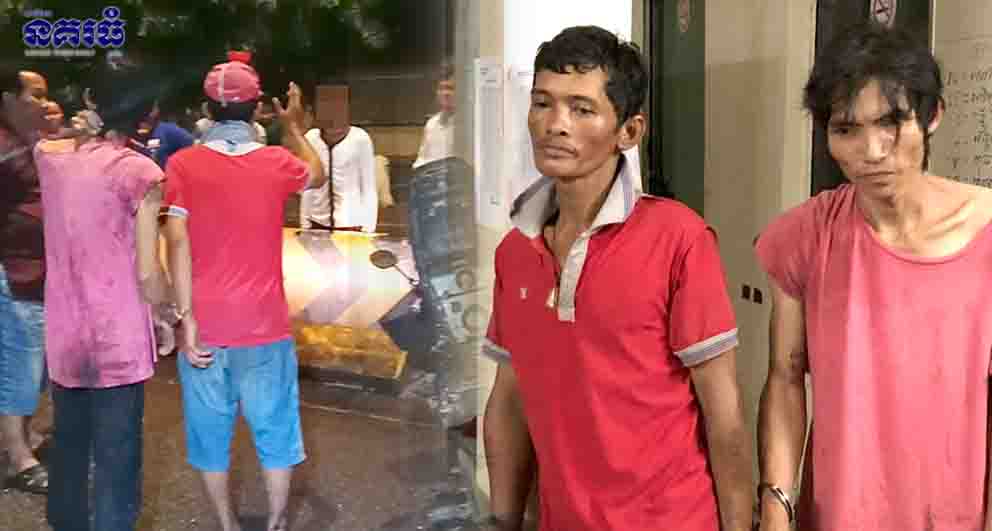 ភ្នំពេញ ៖ បុរស២នាក់បានចោទប្រកាន់បុរស២នាក់ទៀតដែលត្រូវជាមិត្តភក្តិរបស់ខ្លួន ថាបានបន្លំលួចលុយអស់ចំនួន២៥០០០រៀល ទើបធ្វើឱ្យពួកគេកើតទុក្ខមិនសុខចិត្តក៏ទាញរណារ២ដើម ជិះកង់ឌុបគ្នាពីផ្សារដើមថ្កូវទៅកាប់ជនរងគ្រោះដែលកំពុងដេកក្នុងមុងនៅខាងមុខរបងមន្ទីរពេទ្យរុស្ស៊ី បង្កឱ្យការភ្ញាក់ផ្អើលឡើង កាលពីម៉ោង២និង៣០នាទីរំលងអធ្រាត្រ ឈានចូលថ្ងៃទី០៨ ខែសីហា ឆ្នាំ២០១៨ នៅចំណុចមុខរបងមន្ទីរពេទ្យរុស្ស៊ី ចំហៀងខាងជើង ស្ថិតនៅសង្កាត់ទំនប់ទឹក ខណ្ឌចំការមន។