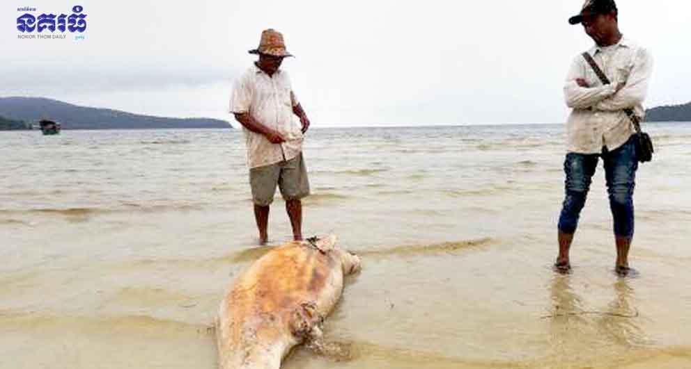 ខេត្តព្រះសីហនុ ៖ ត្រីផ្សោតសមុទ្រមួយក្បាលមានទម្ងន់ប្រមាណជាង១០០គីឡូក្រាម ត្រូវបានគេប្រទះឃើញងាប់អណ្តែតសមុទ្រ មកទើរលើឆ្នេរកោះរ៉ុងសន្លឹម បង្កឱ្យមានការភ្ញាក់ផ្អើលឡើងកាលពីព្រឹកថ្ងៃទី១៥ ខែសីហា ឆ្នាំ២០១៨។