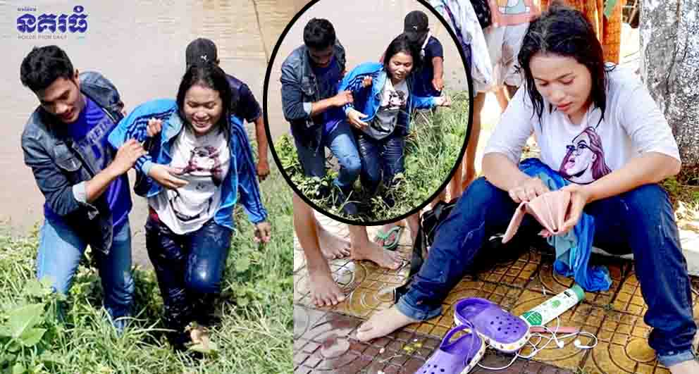 ខេត្តបាត់ដំបង ៖ ស្ត្រីរូបស្រស់ម្នាក់នៅសុខៗក៏ចុះទៅហែលទឹកក្នុងស្ទឹងសង្កែ ដែលកំពុងឡើងខ្លាំង ព្រមទាំងហួរកួចទៀតផង លុះឃើញសភាពគ្រោះថ្នាក់ខ្លាំង ទោះជាមានការលួងលោមឱ្យឡើងគោកវិញយ៉ាងណា ក៏មិនព្រម ទើបមានបុរសក្លាហានម្នាក់ បានស្ទុះលោតចុះទឹក ចាប់អូសទាញស្ត្រីរូបនោះឡើងមកលើគោកវិញ។