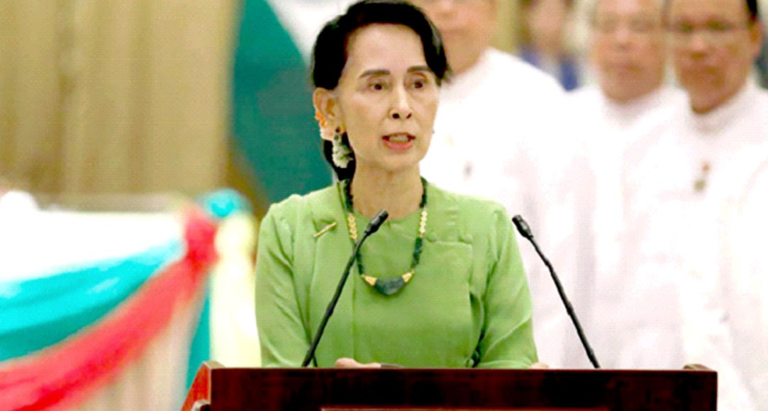 ម្ចាស់ជ័យលាភីពានរង្វាន់ណូបែលសន្តិភាព ដែលត្រូវបានគេមើលឃើញថា ជាអ្នកតស៊ូដើម្បីលទ្ធិប្រជាធិបតេយ្យ បានរងការរិះគន់យ៉ាងខ្លាំង ដោយសារតែលោកស្រីបរាជ័យមិនបានបង្រួបបង្រួម និងនិយាយប្រឆាំងជាមួយនឹងការបង្ក្រាបរបស់យោធាទៅលើជនជាតិរ៉ូហ៊ីងយ៉ា នៅខេត្តរ៉ាក់ឃីន ភាគខាងជើងប្រទេសមីយ៉ាន់ម៉ា។