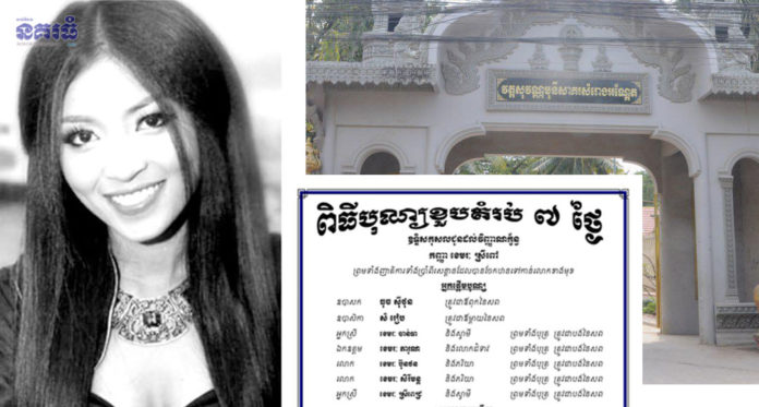 សពខេមរៈ ស្រីពៅ នឹងត្រូវបូជានៅវេលាម៉ោង១និង០៦រសៀលថ្ងៃនេះ នៅវត្តសុវណ្ណមុនីសាគរ សំរោងអណ្ដែត។