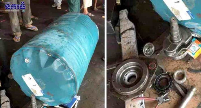 យកបំពង់ខ្យល់ទៅបាញ់ទម្លុះធុងសាំង ដោយមិនមួលគម្រប ផ្ទុះកក្រើក កម្មករម្នាក់ដួលប្រឹប